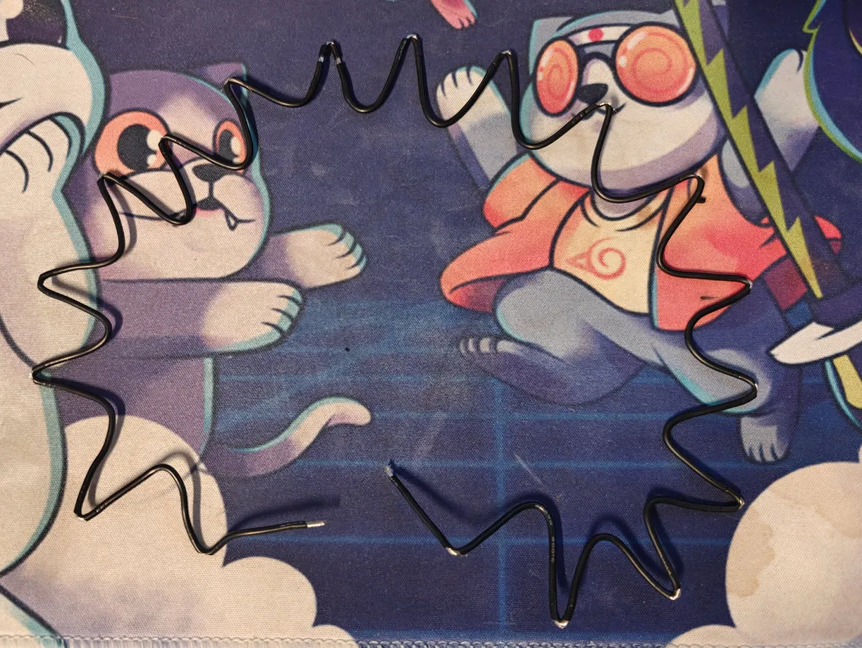 Now to solder… Well, that chain of wire was a pain in the ass. I ended up snipping it into pieces and then soldering one by one in place which was less fiddly for me. Here is my absolutely not professional result.